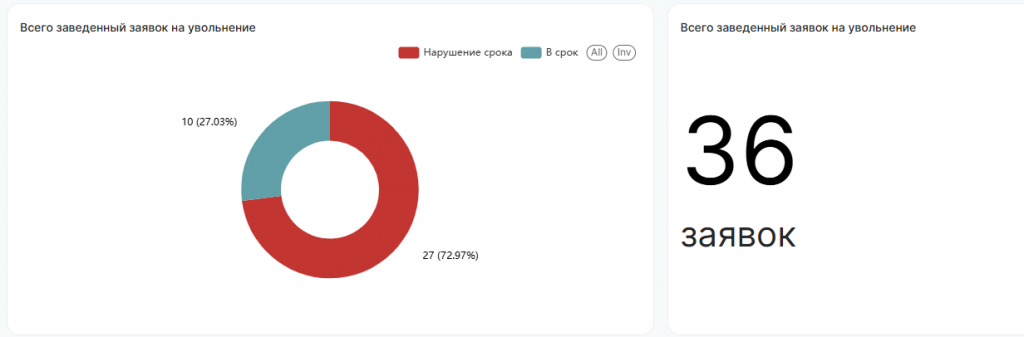 Без единой системы контроля задачи, связанные с увольнением, часто выполняются несвоевременно или теряются. Руководители не имеют объективной картины по загрузке отделов и соблюдению сроков. Специализированный аналитический дашборд решает эту проблему, переводя субъективные оценки в конкретные измеримые показатели. Такой подход позволяет контролировать три ключевых аспекта: своевременность инициации всего процесса, исполнительскую дисциплину на каждом этапе и чёткое распределение ответственности между структурными подразделениями. Это превращает потенциально хаотичную процедуру в управляемый и предсказуемый бизнес-процесс.